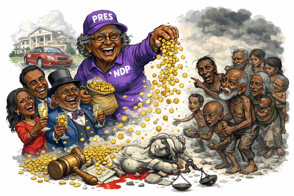 De NDP heeft een lange geschiedenis van verloederend financieel en monetair beleid. Sinds de onafhankelijkheid in 1975 heeft elke NDP-regering – vooral onder Desi Bouterse – bijgedragen aan de grootste financiële crisis ooit. In de jaren ’80 en ’90 leidde militair bewind tot hyperinflatie, devaluaties en schulden die opliepen tot 145% van het BBP in 2020. Bouterse’s regeringen gaven uit als water, met hoge sociale uitgaven zonder dekking, economische nationalisme dat investeerders wegjoeg, en corruptie die de schatkist leegde. Het resultaat: werkloosheid, armoede en een economie die afhankelijk is van grondstoffen. Zelfs na de terugkeer naar democratie in 1991 bleef de NDP vasthouden aan onverantwoord beleid, met leningen die niet werden terugbetaald en subsidies die de begroting uitholden. Dit culmineerde in de crisis onder Bouterse (2010-2020), waar deviezenreserves opdroogden en inflatie piekte tot 59%.